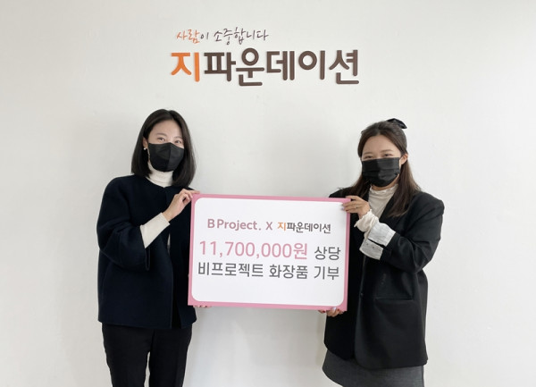 지파운데이션 사회공헌 담당자는“겨울철 충분한 보습이 필요한 시기에 좋은 제품을 기부해주신 비프로젝트에 감사드린다”라며, “미혼모들이 건강한 피부관리를 할 수 있도록 소중히 전달하겠다”고 전했다.