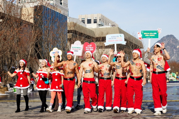 16일, 최저 기온 영하 11도를 기록한 한파의 날씨에도 생명나눔의 중요성을 알리려는 나눔산타들이 광화문 광장으로 나섰다. 이들은 대한민국 1세대 퍼스널 트레이너이자 인기 연예인들의 스포츠 트레이너로 잘 알려진 건강 전도사 아놀드 홍을 비롯한 스포츠 트레이너와 방송인 에바 포피엘 씨 및 장기기증 희망등록자 등 40여 명이다.