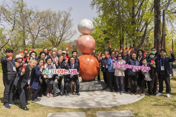 기념공간에 자리 잡은 ‘나누고 더하는 사랑’을 의미하는 조형물은 홍익대학교 환경미술연구소 이수홍 교수가 도안한 작품으로, 위로 쌓아 올린 3개의 구에 생명을 상징하는 물의 형태와 혈액의 색감이 더해졌다. 각각의 구들은 아래부터 차례로 숭고한 나눔을 실천한 기증인과 장기기증을 결정한 가족, 그리고 생명을 이어받은 이식인을 의미한다. 굳건한 반석 위에 세 개의 구체가 모여 퍼져나가는 모양은 장기기증의 고귀한 사랑과 나눔의 정신을 세상 곳곳에 확장시킨다는 뜻을 담았다.