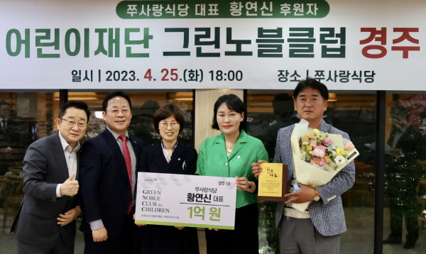 그린노블클럽 경주 1호 황연신 대표는 “코로나19 장기화로 음식점 경영이 어렵지만 아이들을 돕기 위해서는 당연히 기부해야 한다”며 “뜻있는 일에 동참할 수 있어 감사하고, 앞으로 경주지역에 그린노블클럽 2호, 3호 후원자가 함께하여 지역사회 선한 영향력이 전파되길 바란다”고 밝혔다.