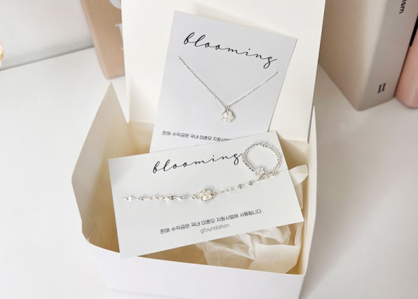 특히, 이번 해피빈 펀딩의 실버 주얼리는 사람이 소중한 가게의 베스트 셀러 블루밍 주얼리의 기존 써지컬스틸 소재에서 실버 92.5% 소재로 개선하여 소장가치를 높여 봄과 여름에 착용하기 좋은 악세서리로 재탄생했다.