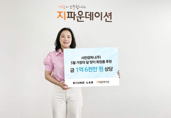 지파운데이션(대표 박충관)은 서린컴퍼니㈜(대표 정서린, 이영학)로부터 5월 가정의 달을 맞아 국내 취약계층을 위해 1억 6천만 원 상당의 화장품 7,000여개를 기부 받았다고 1일 밝혔다.