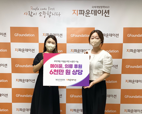 메이윤이 기부한 물품은 ‘메이윤’온라인 쇼핑몰에서 판매하는 의류 약 1,000벌로, 지파운데이션을 통해 미혼한부모가정 등 국내 취약계층의 삶의 질 향상을 위해 사용될 예정이다.