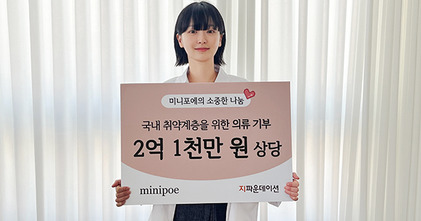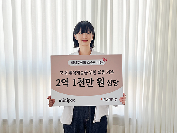 주식회사 포에가 기부한 물품은 브랜드 ‘미니포에’의 여성의류 6,126벌로, 지파운데이션 나눔가게에 전달되어 판매 기부금은 저소득 아동청소년, 미혼한부모 가정, 독거노인 등 도움이 필요한 국내 취약계층을 위해 사용될 예정이다.
