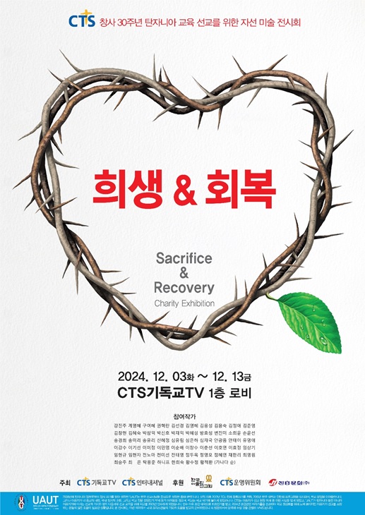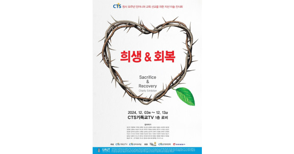 CTS기독교TV(회장 감경철, 이하 CTS)가 창사 30주년을 기념하며 아프리카 교육선교를 위한 자선 미술 전시회를 개최한다. 오는 12월 3일부터 13일까지 노량진 CTS멀티미디어센터 1층 로비에서 열리는 전시회는 ‘희생 & 회복’을 주제로 한국미술인선교회(회장 신혜정)와 함께 진행한다.