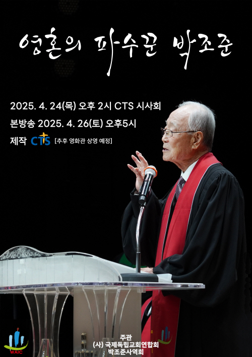 <영혼의 파수꾼, 박조준> 다큐멘터리는 오는 424() 오후 2, CTS 아트홀에서 시사회를 개최하며, 이후 426() 오후 5, CTS기독교TV 부활절 특집 다큐멘터리로 방영될 예정이다. 교계 인사들과 후배 목회자들이 함께 자리하는 이번 시사회는 단순한 상영회를 넘어 박조준 목사의 신앙과 사역을 되새기고 계승하는 기념비적 자리가 될 것으로 기대를 모은다.