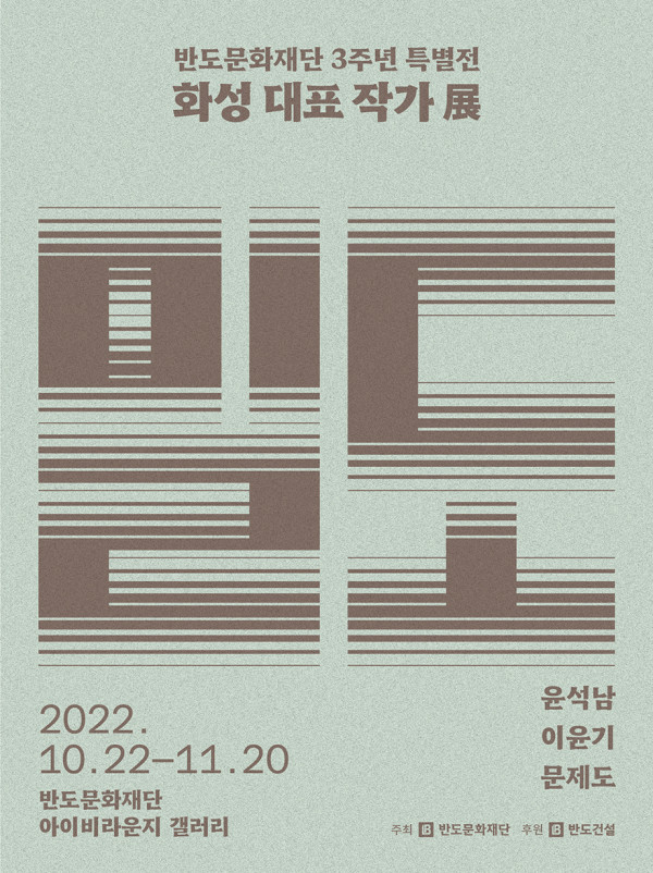 반도문화재단이 창립 3주년을 기념해 화성시에 연고를 둔 미술계 대표인 윤석남,이윤기,문제도 작가의 작품을 한 자리에서 감상할 수 있는 화성 대표작가 전을 마련했다.