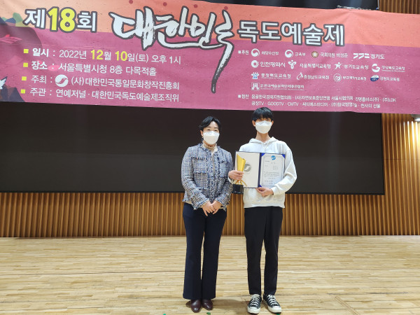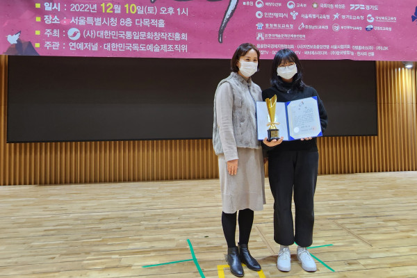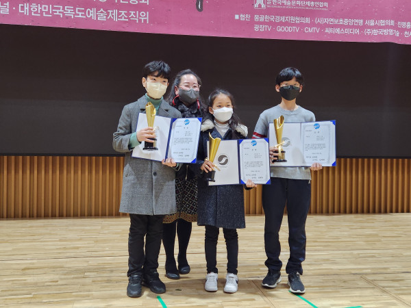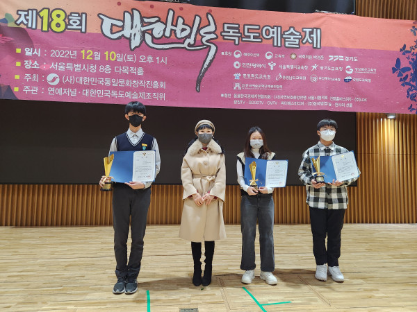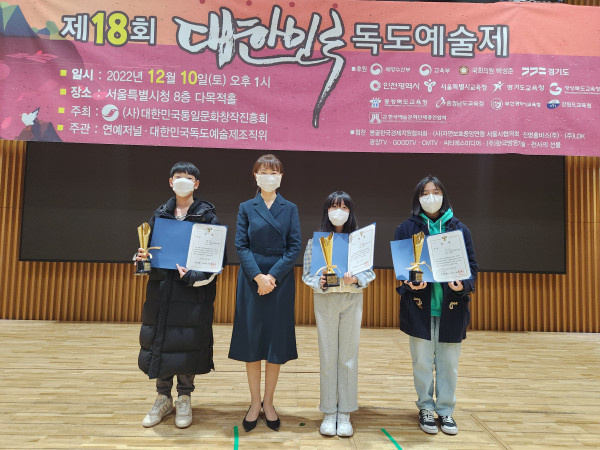 △장은혜 운영이사가 시상한 경기도교육감 대상 중등부 수상자 모습
