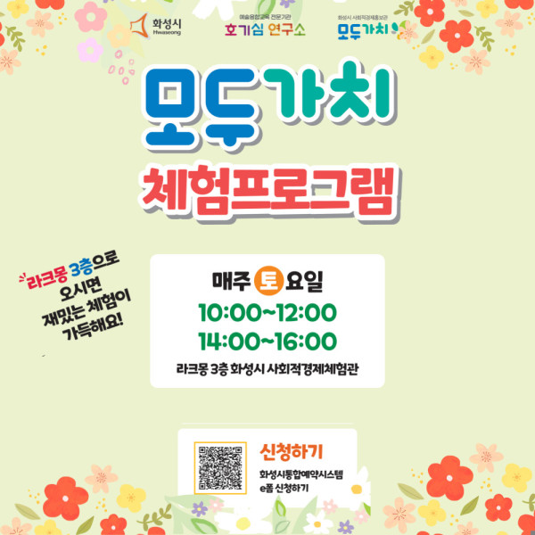 또한 별도의 참가 비용없이 무료로 참여 가능하며, 화성시 통합예약시스템에서 원하는 프로그램을 선택해 예약하면 된다.