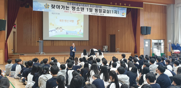 민주평화통일자문회의 화성시협의회(회장 이재현)는 17일 화성시 기산중학교 전교생을 대상으로 찾아가는 청소년 1일 통일교실을 진행했다.