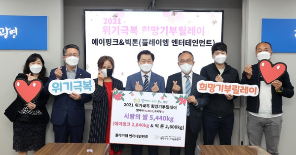 한편, 2021 위기극복 희망기부릴레이는 ‘함께하자,나누자,극복하자’로 코로나19와 같은 다양한 위기를 함께 이겨내자는 나눔운동으로 기업·단체, 개인 등 다양한 참여로 이어가고 있다.