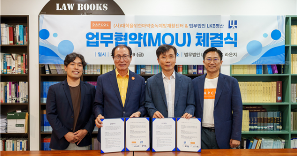 (사)대학을위한마약중독예방재활센터 (이하 답콕. DAPCOC Drug Addiction Prevention-Rehabilitation Center On the Campus. 이사장 두상달)에서 최근 서울 서초구 소재 법무법인 LKB평산 B1 라운지에서 「법무법인 LKB평산」과의 업무협약식이 진행됐다.