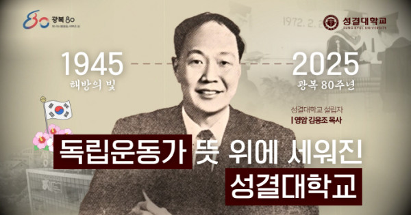 성결대학교(www.sungkyul.ac.kr, 총장: 정희석)가 2025년 광복 80주년을 맞아, 설립자 고(故) 영암 김응조 박사의 독립운동 정신을 기리는 기념 영상을 제작해 8월 13일 인스타그램(https://www.instagram.com/reel/DNP6z8oSXym/?igsh=ZzNoanF6YWRhN244)과 유튜브 공식 채널(https://youtu.be/ya-yvkkZWOw)을 통해 공개했다.