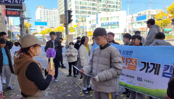 수성중학교 선플누리단, 청소년들에게 친절한 가게 선정 시상