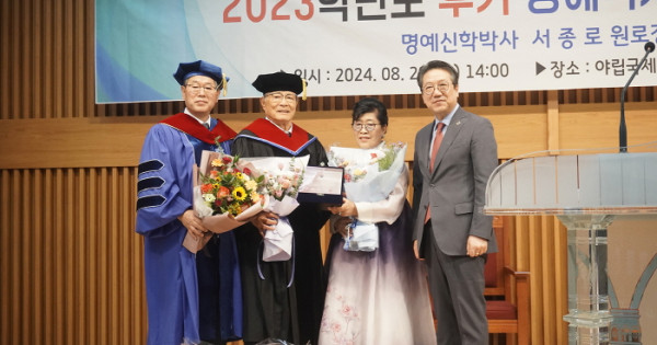 성결대학교(www.sungkyul.edu)가 8월 28일, 성결대학교 학술정보관 야립 국제회의실에서 서종로 예수교대한성결교회(이하, 예성) 신림제일교회 원로장로에게 명예신학박사 학위를 수여하는 뜻깊은 행사를 진행했다. 이 자리에서 서 장로는 성결대학교와 예성교단 및 지역사회를 위해 헌신한 지난 세월의 공로를 인정받아 학계와 교계 인사들의 축하 속에 학위를 수여받았다.