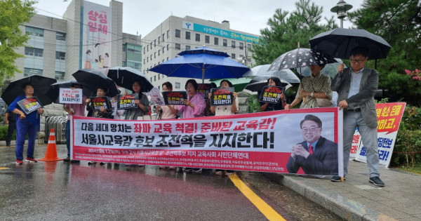 조전혁 후보지지 교육사회시민단체연대(이하 조교연)는 지난 12일 서울시 교육청 앞에서 기자회견을 열고, 조 예비후보의 지지를 선언했다.