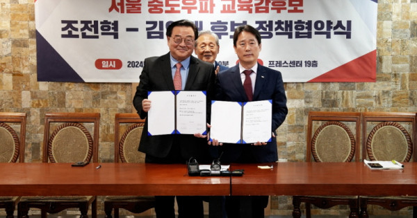 조 후보는 “제 능력이 우리 김 예비후보보다 더 우월하다고 절대 생각하지 않는다”라며 “(이번 선거에서 승리해) 교육감이 되는 것은 저 혼자 되는 게 아니다. 건전한 상식을 갖고 있는 중도보수우파 진영 전체가 교육감이 되는 것이라 생각한다”라고 강조했다.