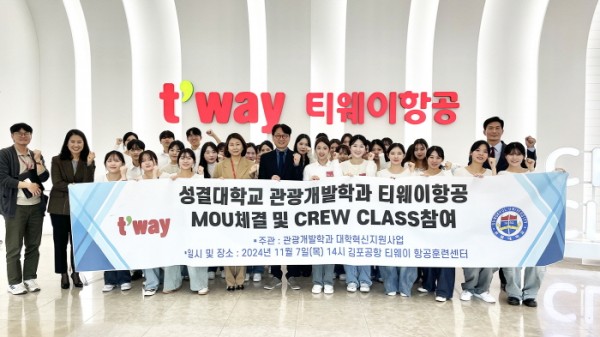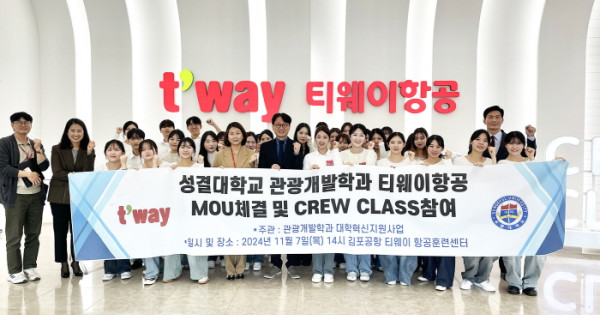 특히 이번 체험 프로그램 직후 성결대학교 관광개발학과와 티웨이항공은 산학협력 MOU를 체결, 학생들에게 보다 실질적인 취업 기회를 제공할 수 있는 기반을 다졌다. 성결대 관광개발학과장 김경배 교수는 “이번 프로그램은 학생들에게 항공 산업의 현실을 깊이 이해할 수 있는 귀중한 기회였다”며 “이번 MOU 체결로 학생들이 실무 역량을 쌓고 취업 경쟁력을 강화할 수 있기를 기대한다”고 밝혔다.