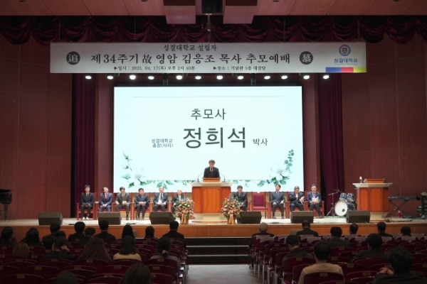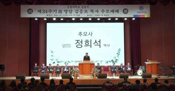 성결대학교(www.sungkyul.ac.kr, 총장서리: 정희석)가 4월 17일, 성결대학교 기념관 대강당에서 ‘제34주기 故 김응조 목사 추모 예배’를 진행했다. 이번 예배는 성결교단과 한국교회 발전에 큰 발자취를 남긴 故 김응조 목사의 신앙과 교육 정신을 기리고, 그 유산을 계승하고자 마련됐다.