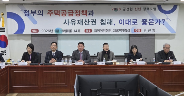 공공주택지구 전국연대 대책협의회(이하 공전협/의장 임채관)는 19일, 서울 여의도에 있는 국회의원회관 제8간담회장에서 '정부의 주택공급정책과 사유재산권 침해, 이대로 좋은가'를 주제로 <신년 정책포럼>을 개최했다.