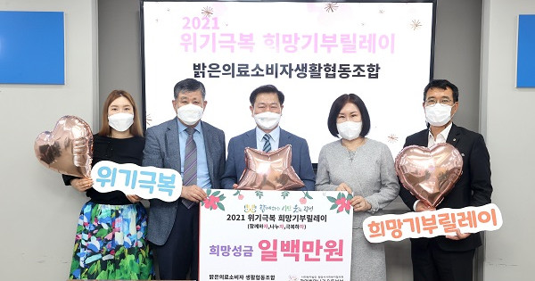 밝은의료소비자생활협동조합(행정원장 윤순임)은 9일 2021 위기극복 희망기부릴레이 희망성금 100만원을 광명시사회복지협의회(회장 이상재)-광명희망나기운동본부에 전달하였다.