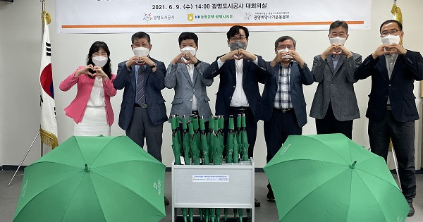 이번 공유우산 보급사업은 NH농협은행 광명시지부가 마련한 공유우산과 우산꽂이를 광명도시공사와 광명시사회복지협의회가 광명시 관내 복지관과 노인이용시설을 대상으로 보급하여 갑작스러운 우천 상황에 시민들의 안전을 확보하고, 불필요한 우산소비를 방지하여 자연환경을 보호하자는 의미로 추진하였다.