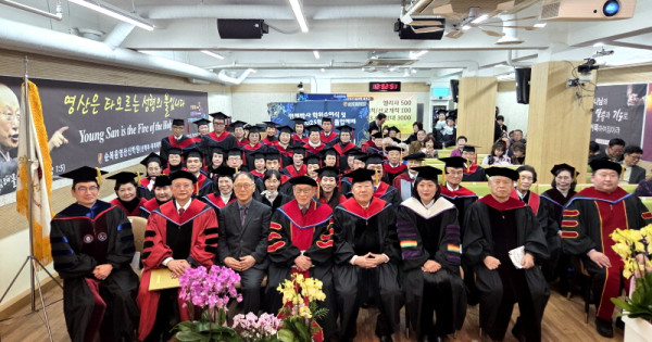 순복음영산신학원(총장 장혜경 목사)은 17일 오전 서울 양천구 신학원 대성전에서 제40회 신학부, 제26회 목회대학원, 제5회 목회박사원 2025학년도 졸업예배를 드리고 신학부·목회대학원·목회박사원 졸업생을 배출했다.