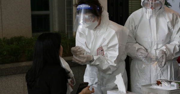 31일 오후 개회예배를 앞두고 참석자 전원을 대상으로 코로나 즉석 진단 킷트를 이용 검사후 음성 판정자에 한해 출입을 허용하고 있는 모습. 사진은 참석자를 대상으로 즉석 코로나 검사를 하고 있는 모습.