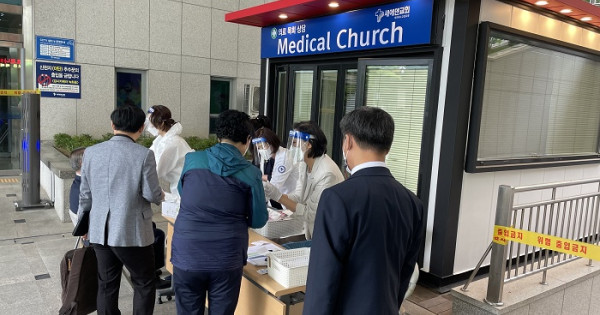 [포토]합동총회 목장기도회 참석자 대상 코로나 즉석 검사