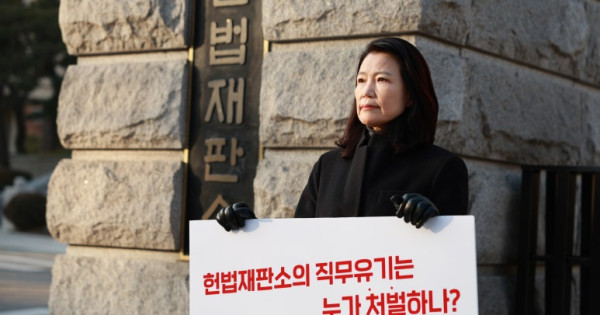이진숙 전 방송통신위원장 헌재 앞 1인 시위
